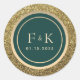Palhetas de casamento simples, modernas, elegantes, brilhantes, de ouro e monograma verde esmeralda para selos de envelopes, com iniciais e data personalizadas.
