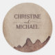 Adesivo Redondo Casamento de montanhas castanhas com papel rústico