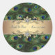 Adesivo Redondo Casamento de Pavão Real Indiano Ouro Verde Esmeral