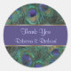 Casamento de penas de pavão verde e roxo Obrigado Sticker. Você pode ajustar o texto de acordo com as suas necessidades.