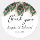 Adesivo Redondo Casamento de Penas de Peacock Elegante