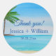 Adesivo Redondo Casamento de Praia da Ilha Tropical Ocean Obrigado