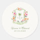 Adicione um toque de brisa à sua papelaria com este adesivo de casamento da palmeira tropical, com um monograma personalizado, pêssego mole e florais cor-de-rosa, e um fundo de natas quentes. Perfeito para casamentos de praia ou destino, esse adesivo redondo clássico é ideal para selar envelopes, favorecer bolsas ou presentes de boas-vindas com charme costeiro e talento romântico e tropical.