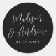 Adesivo Redondo Casamento de preto e branco personalizado com scri