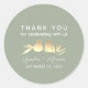 Elegante empoeirado vassoura adereço de casamento verde apresentando pássaros falsos dourados e uma doce mensagem "Obrigado por celebrar conosco". Personalizado com os nomes do casal e a data do casamento, este adesivo redondo é perfeito para selar envelopes, decorar bolsas favoritas ou adicionar um toque romântico à sua decoração de recepção. Coordena-se com a suíte de casamento correspondente ao cheio.