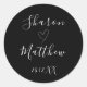 Adesivo Redondo Casamento de Script Manuscrito Clássico Preto e Br