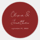 Adesivo Clássico Redondo Clássico de Casamento com Script Vermelho Mínimo Simples