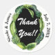 O Casamento De Verão De Folhas Tropicais Agradece-Lhes Os Autocolantes Personalizados. Personalize com qualquer texto desejado. A cor de fundo do adesivo pode ser qualquer cor. O branco é mostrado, por exemplo.