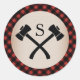 Um adesivo rústico elegante com design de machado monograma com fundo de xadrez de búfalo.