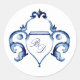 Adesivo Redondo Casamento Delft Monogramas de Crest Blue e White