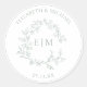 Adesivo Redondo Casamento do Monograma de Folha Verde de Sábio Mod