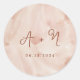 Um adesivo redondo clássico monograma moderno que inclui as iniciais da noiva e do noivo com uma data de casamento que apresenta o único pano de fundo rústico e o belo roteiro de caligrafia que corresponde à cor do fundo.