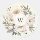 Adesivo Redondo Casamento do Monograma Floral Branco Rustic Greene