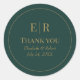 Adicione um pouco de gratidão com o nosso casamento do Monograma Verde Moderno Emerald Obrigado Clássico Round Sticker. Apresentando um refinado pano de fundo verde esmeralda com um elegante design de monograma em ouro, estes adesivos transmitem elegantemente apreciação. Perfeito para selar envelopes ou adorar favores de casamento.