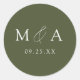 Adesivo Redondo Casamento do Monograma Verde Oleícola Moderno Eleg