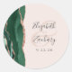 Este elegante e moderno adesivo de casamento apresenta uma esmeralda cor d'água verde agate design com falso brilho rosa dourado. Personalize facilmente o texto da cinza de carvão em um fundo rosa-pinto-pincelado, com os nomes da noiva e do noivo em caligrafia manual sobre uma grande e-mail.