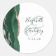Este elegante e moderno adesivo de casamento apresenta uma esmeralda cor d'água verde agate design com falso brilho rosa dourado. Personalize facilmente o texto das cinzas de carvão em um fundo branco, com os nomes da noiva e do noivo em caligrafia manual sobre um grande e verde.