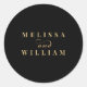 Elegante moderno Dourado Clássico de Casamento Negra. Design apresenta nomes de noivo e noivo, além de ‘e’ em um roteiro de ouro decorativo mostrado a preto. Excelente para a embalagem de favores de casamento, selos de envelope. Convidamos você a visitar nossa loja Zazzle, Austen & Grace para combinar produtos e muito mais. Entre em contato conosco se precisar de assistência ao design.