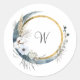 Um belo monograma floral branco azul e ouro, redondo de casamento ou adesivo quadrado. Personalize com a sua inicial.