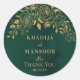 Casamento Floral Dourado Real Emerald Green Obrigado Clássico Vinheta Redonda Este adesivo redondo clássico, uma miniatura de obra-prima, incorpora o espírito de gratidão. Um pano verde esmeralda real adornada com delicados florais de ouro define o palco. No seu coração, os nomes dos casais são apresentados elegantemente em tipografia ousada, um testamento do seu amor. Incorporado com sentimentos sinceros como "Com amor" e "Obrigado", este autocolante serve como um bem-estar apreciado para os hóspedes. Sutilmente incorporada, a data do evento adiciona um toque final a este símbolo requintado de apreciação. Projetado como um favor de casamento islâmico, este adesivo ganha envelopes, presentes e muito mais, acrescentando um toque de elegância a cada ocasião.
