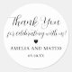 A coisinha perfeita para selar sua caixa de favoritos do casamento ou obrigado nota. O obrigado que você sente está escrito em uma fonte de script divertida, então seu nome e data de casamento estão em um texto clássico de serif. Um coração doce os separa. Este artigo faz parte do Elegant Minimalist Stationery Suite.