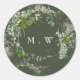 Adesivo Redondo Casamento Elegante Verde Eucalyptus Wreath Monogra