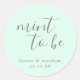 Chic e os adesivos modernos de favores de casamento com um design mínimo com a mensagem, "Mint To Be" em uma letra escrevendo de mão e seus nomes e data abaixo, em cinzas, sobre um fundo verde de menta. As fontes e as cores de fundo podem ser alteradas para qualquer cor desejada. Estes adesivos elegantes e na moda são perfeitos para o casal minimalista e adicionam um toque pessoal aos seus favores.