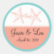 Adesivo Redondo Casamento entre Teal e Coral Starfish