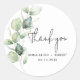 Eucalyptus Watercolor Wedding Obrigado Classic Round Sticker que você pode personalizar facilmente para seus eventos especiais, chás de panela, aniversários e graduação