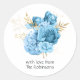 Adesivo Redondo Casamento Floral Azul Pastel e Dourado