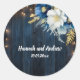 Adesivo Redondo Casamento Floral Branco Da Madeira Azul Rústica