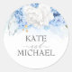 Adesivo Redondo Casamento Floral Branco e Azul Dusty