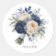 Adesivo Redondo Casamento Floral de marinho Azul e Marfim