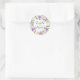 Adesivo Redondo Casamento Floral de Roxo Rústico e Rosa Branca de
