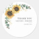 Adesivo Redondo Casamento Floral De Sunflower Eucalyptus Obrigado