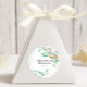 Design apresenta uma elegante imagem oval de cor dourada decorada com caules de eucalipto de cor aquosa e uma fita cor de pêssego/laranja. Itens correspondentes para concluir sua coleção de eventos estão disponíveis em nossa loja Zazzle!