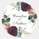 Com moderno charme rústico e elegância, este design apresenta cores ricas de vermelho burgundy, laranja rústico, rosa pincelado e verde-lacrimogêneo em uma bela borda floral sobre uma moldura bordada em ouro ao redor do seu texto. Estas cores são frequentemente utilizadas em casamentos desde o Verão-médio até ao outono e durante os meses de inverno. Personalize a modelo de texto com os nomes da noiva e do noivo e a data do casamento. Outros produtos de casamento correspondentes estão disponíveis para coordenar com este item. Este adesivo faz um encantador selo para o seu casamento ou convites de festas. Também pode ser usado para favores e presentes. Os autocolantes têm um pequeno diâmetro de 1/2 polegada ou 3 polegadas. Escolha o tamanho que se adequa às suas necessidades.