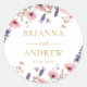 Os autocolantes personalizados apresentam um belo design floral, rosa e roxo, pode ser personalizado com seus nomes e data.