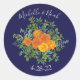 Adesivo Redondo Casamento Floral Laranja e Marinho Azul