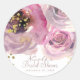 Adesivo Redondo Casamento Floral Moderno Rosa e Dourado Aniversári