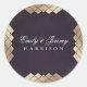 Um design formal elegante no Excelente Geométrico Deco Gatsby design surpreendente com linhas de deco no estilo Gatsby do Excelente. Muito moderno, moderno e elegante. Folha de Ouro na frente do adesivo redondo clássico fornecendo detalhes complexos para sua recepção de casamento, janto de ensaio ou festa de noivado com esses adesivos redondos clássicos personalizados, belo toque pessoal. Clássico do Round Sticker em um tema de casamento inspirado em boho. O antigo boho inspirou o embelezamento do casamento com Nomes, data e local. Este Classic Round Sticker complementa o Wedding Suite ou é parte separada de qualquer recurso de casamento. Rico e casamentos formais. Avant-Garde.