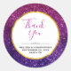 Obrigado de casamento você cola com um rico e um design elegante. O fundo composto por pedras cintilantes rosadas e roxas. Tendência e vibração feminina. Um círculo com uma borda faux-gold-foil colocada sobre cima com a sua dentro de texto.