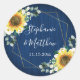 Estes adesivos de casamento apresentam um design floral de aquarela com girassóis, flores brancas e folhagem com uma falso estrutura geométrica dourada. O fundo é um padrão marinho de grãos de madeira azul. Personalize-o com o seu próprio texto. Estes autocolantes fazem parte de uma coleção que inclui uma série de artigos de papelaria de casamento e outros artigos de casamento. Visualize a página de coleta ou visite nossa loja para ver o intervalo de cheios.