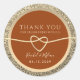 Obrigado de casamento moderno, elegante, laranja queimado e ouro brilhante que você veste para favores, com coração romântico de corda e simples roteiro de caligrafia.
