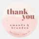 Favor De Casamento De Blush & Bloom Bold Script Minimalista, Obrigado Aos Padrões Clássicos Redondos. Elevem seus favores de casamento com esses elegantes e Minimalistas Blush & Bloom Wedding Obrigado Classic Round Stickers. Apresentando uma delicada pincelada e lavagem a água dourada rosa com textura sutil, esses adesivos adicionam um toque de charme a qualquer favor. Um sincero "Obrigado" está lindamente escrito em um roteiro ousado para expressar sua gratidão aos seus convidados. Personalize esses adesivos com os nomes dos casais em negrito e a data e local do casamento para um toque personalizado. Esses adesivos versáteis são perfeitos para selar bolsas favoráveis, anexar presentes ou adicionar um toque especial a papelaria de casamento. Eles também podem ser usados para qualquer outra ocasião especial, fazer-os de uma adição verdadeiramente versátil e elegante às suas celebrações.