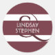 Adesivo Redondo Casamento Moderno da Borgonha e Stripes Brancas