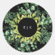 Um clássico design elegante modernizado com texto monográfico e a colocação de verde-aquarela para embelezar o adesivo redondo clássico. Flores clássicas modernas. Casamento na moda clássico com esta reviravolta do modernismo por Phrosne Ras Design - O Clássico Redondo das Plantas de Folha Verde Fresca torna-se absolutamente único. Isto é parte da suíte.