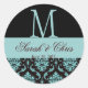 Adesivo Redondo Casamento Monograma Damask Blue Black Seal