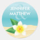 Adesivo Redondo Casamento na Praia com Flor Tropical de Frangipani