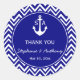 Marinho azul e obrigado náutico branco monograma, de casamento náutico. O design apresenta um marinho azul e uma âncora náutica branca com as iniciais da noiva e do noivo.